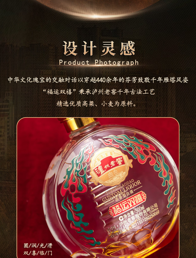 泸州老窖雁塔祈福福运双禧浓香型白酒