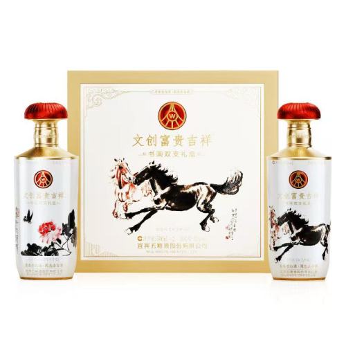 五粮液富贵吉祥书画马年生肖文创礼盒浓香型白酒500ml*2瓶