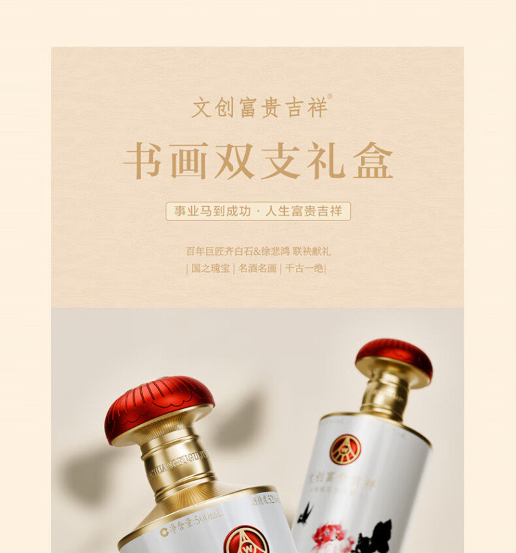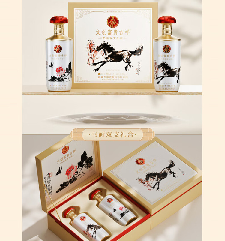 五粮液富贵吉祥书画马年生肖文创礼盒浓香型白酒500ml*2瓶 500ml*2瓶