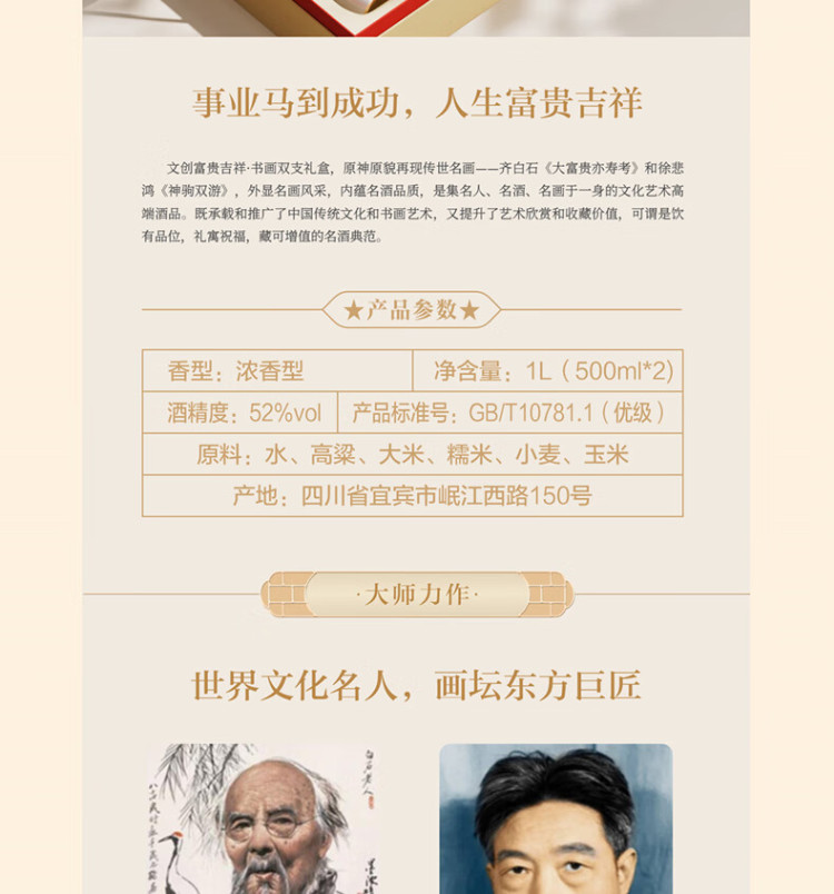 五粮液富贵吉祥书画马年生肖文创礼盒