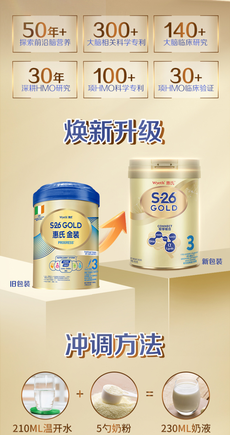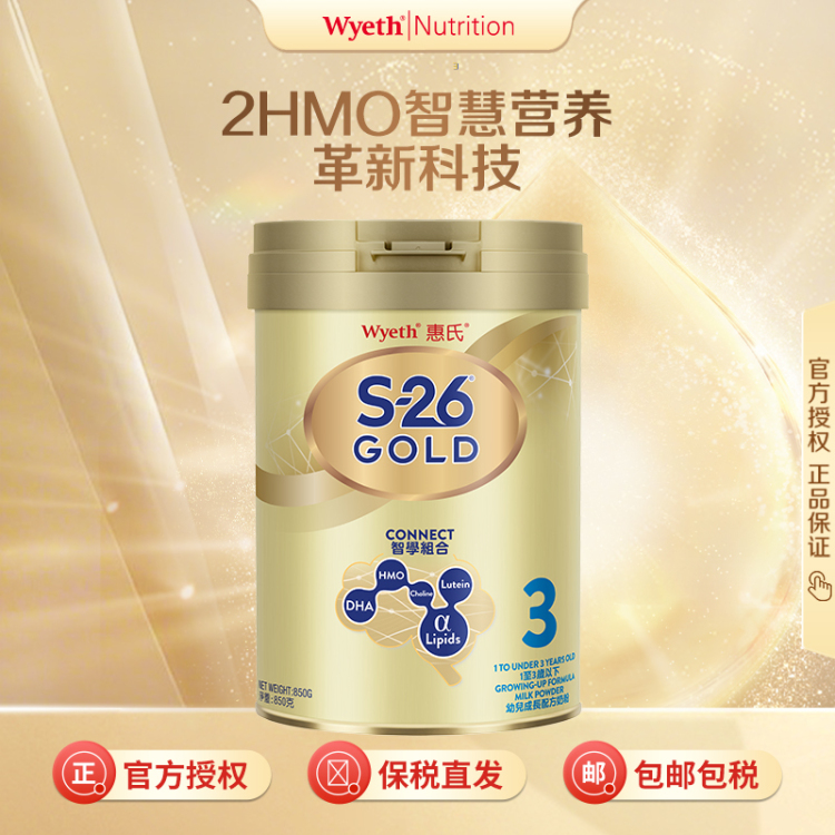 惠氏Wyeth金装幼儿奶粉 3段 1-3岁 850g(新版) 900g