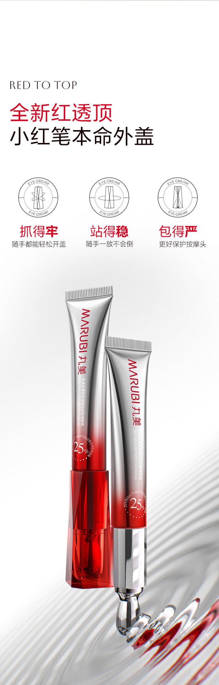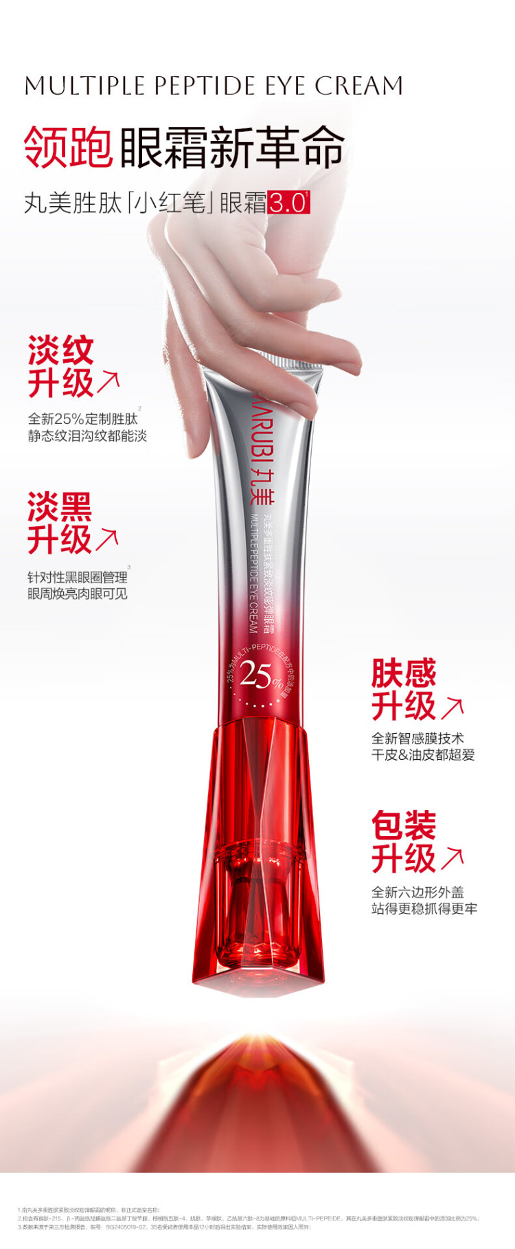丸美小红笔眼霜胜肽淡化黑眼圈细纹提拉紧致带按摩头 正装30g