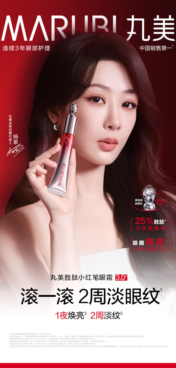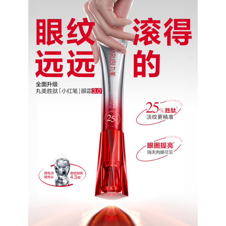 丸美小红笔眼霜胜肽淡化黑眼圈细纹提拉紧致带按摩头