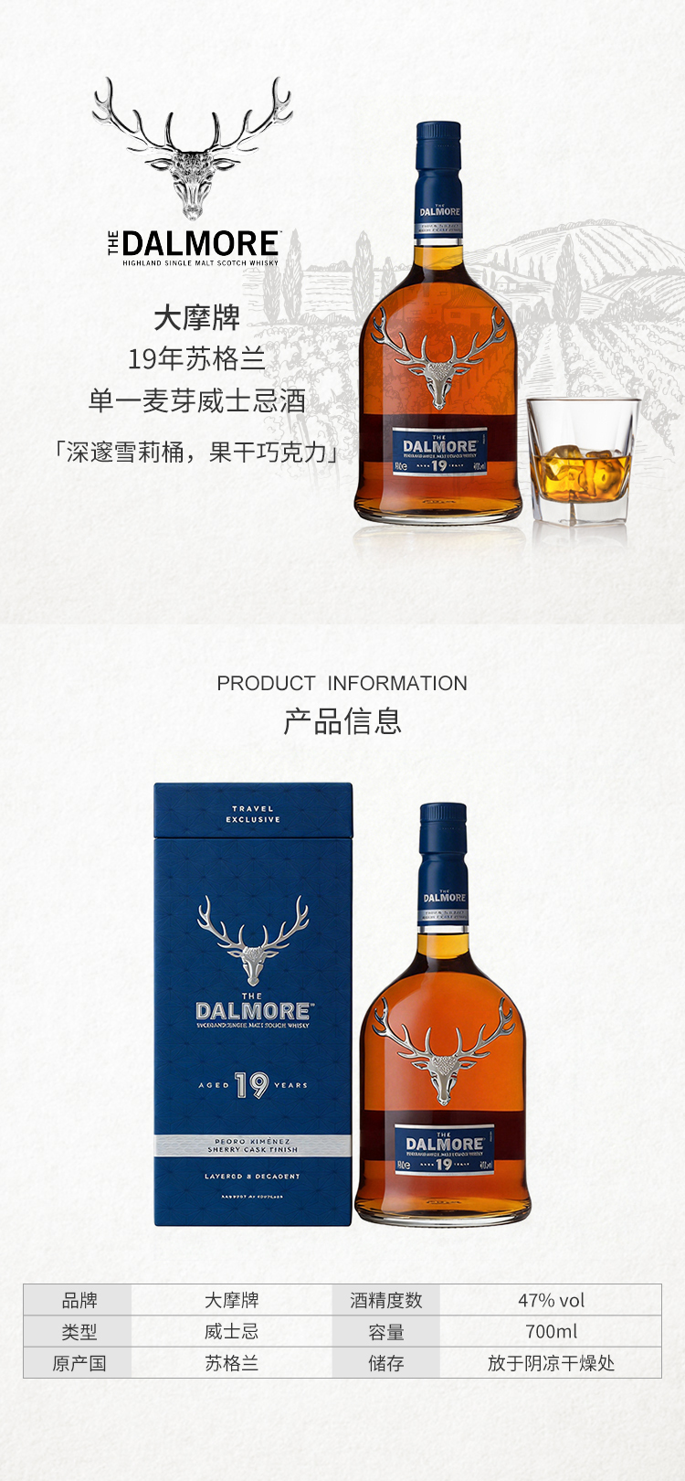 大摩19年苏格兰单一麦芽威士忌酒700ml(47%) 700ml/瓶