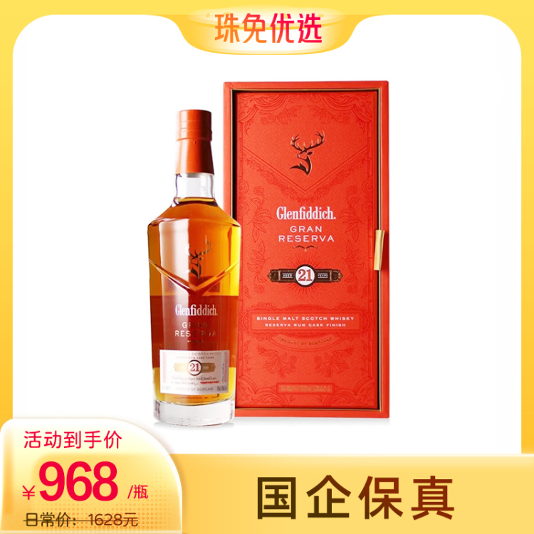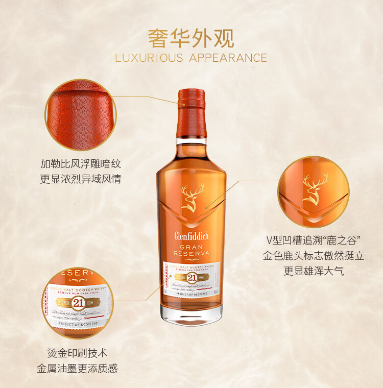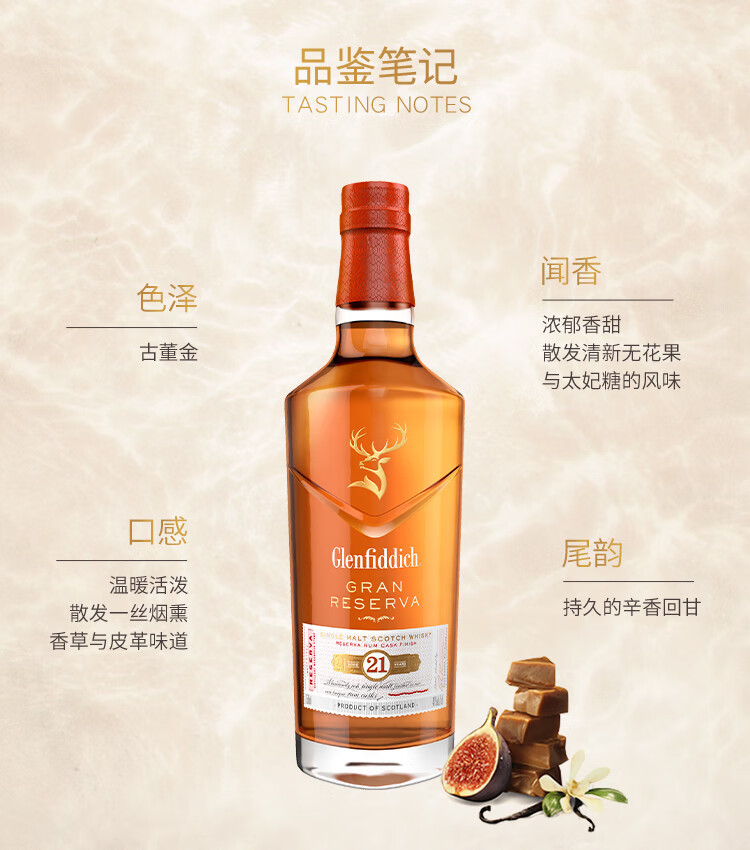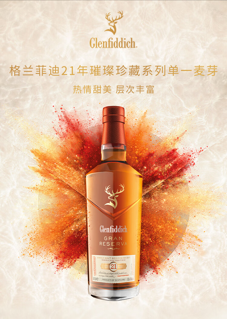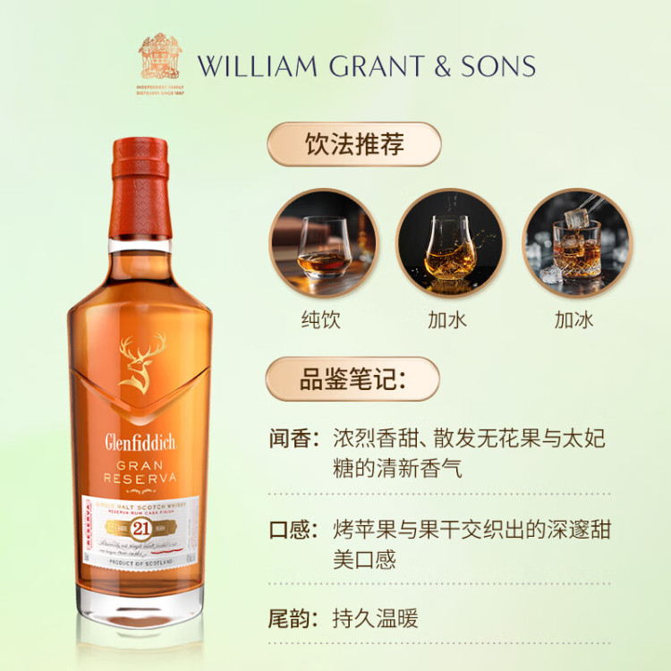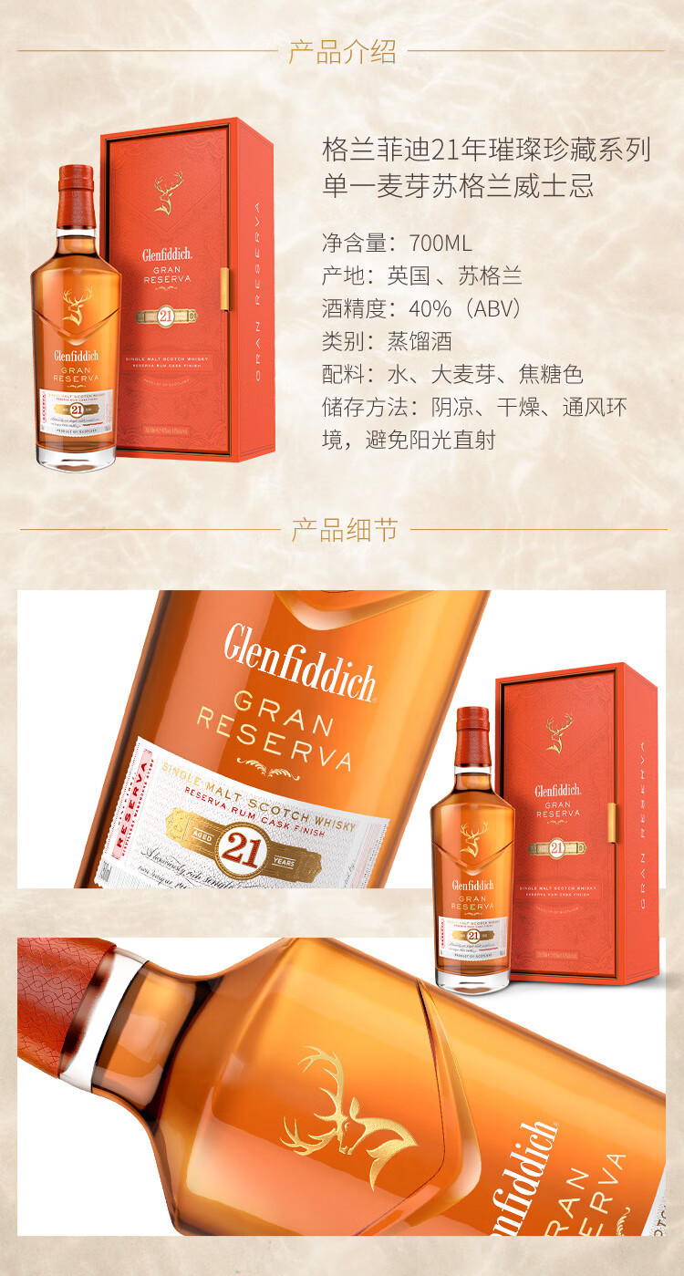 格兰菲迪21年璀璨珍藏单一麦芽威士忌酒700ml